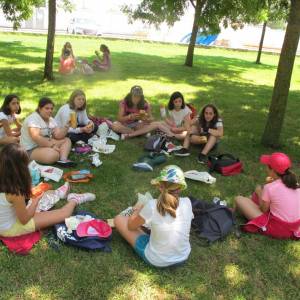 We had lunch in the park, and played cards. After the park, we went to the Cathedral and then the palace. The kids really seemed to like the cathedral most, and were really interested by the architecture and stained glass. We walked a bit more around the gardens outside the palace, then headed back to the camp. I really enjoyed today, and I'm glad I got to spend some time with other students outside the classroom. Best day so far, but I hear tomorrow may have an interesting theme. Stay tuned, and check out the pictures.