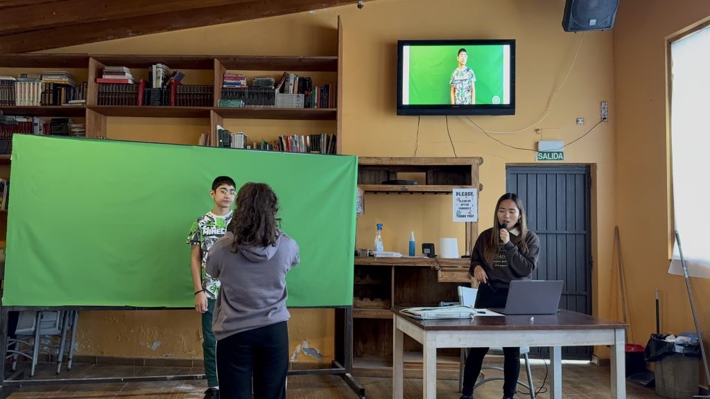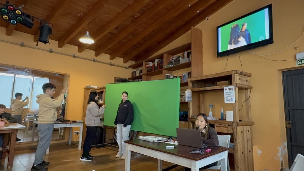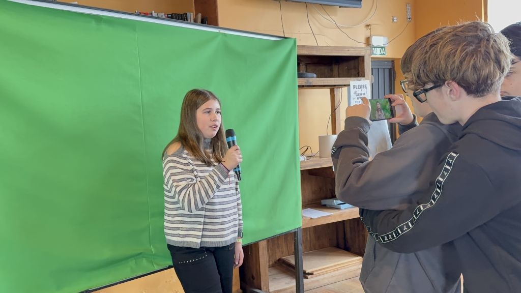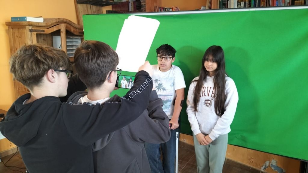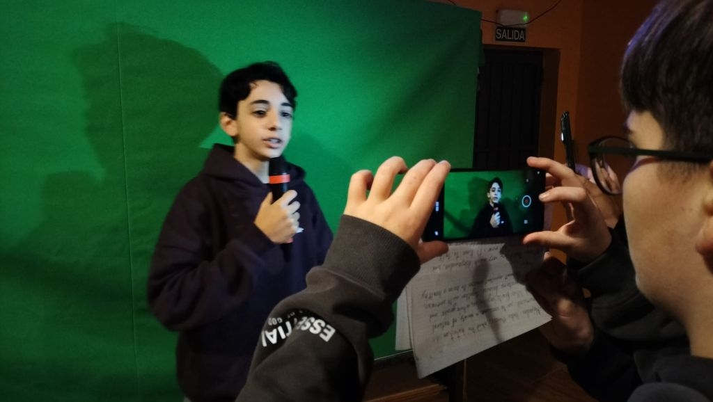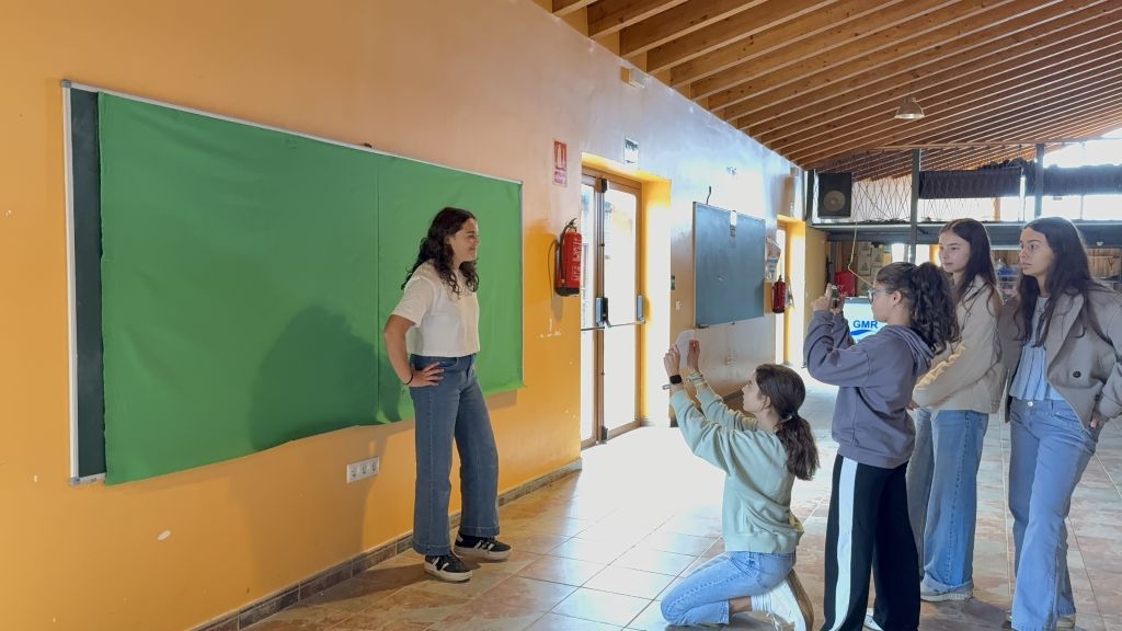 Uno de los elementos clave del proyecto es el uso del chroma (pantalla verde). Gracias a esta herramienta, los alumnos y alumnas aprenden cómo se construye un informativo profesional, entendiendo no solo la parte técnica, sino también la importancia de la coordinación, la comunicación y la responsabilidad que conlleva trabajar frente y detrás de la cámara.