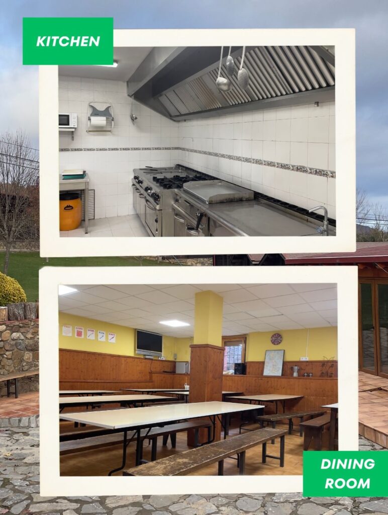 El comedor, amplio y acogedor, es uno de esos lugares donde no solo se come: también se comparten risas, historias del día y momentos que luego recuerdan todo el año. Y desde nuestra cocina equipada preparamos menús equilibrados y adaptados a las necesidades de cada grupo.